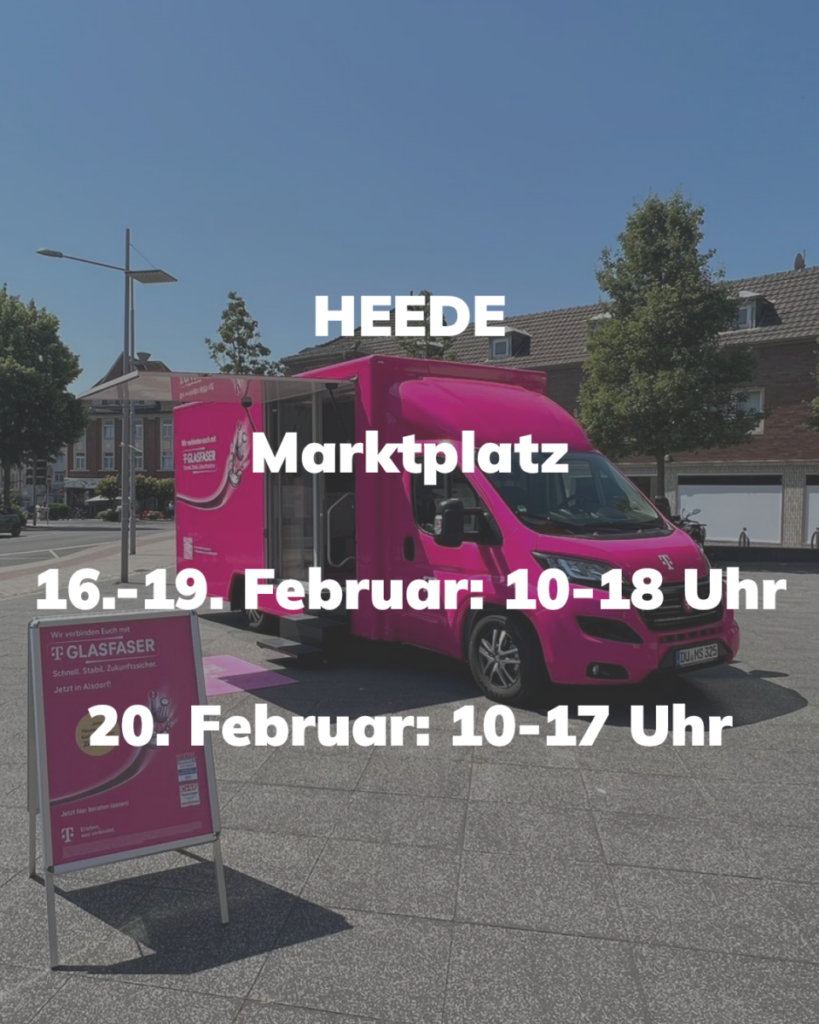 Infomobil der Telekom zum Glasfaserausbau vom 16.02.2026 bis zum 20.02.2026 in Heede